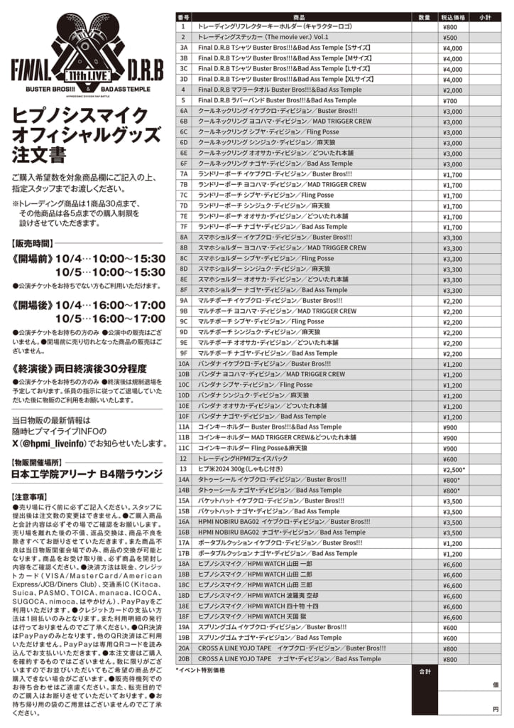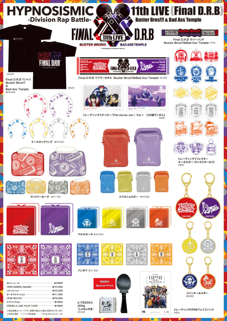 「ヒプノシスマイク -Division Rap Battle- 11th LIVE ≪Final D.R.B≫Buster Bros!!!&Bad Ass Temple」の会場物販 & 他ブース出店のお知らせ