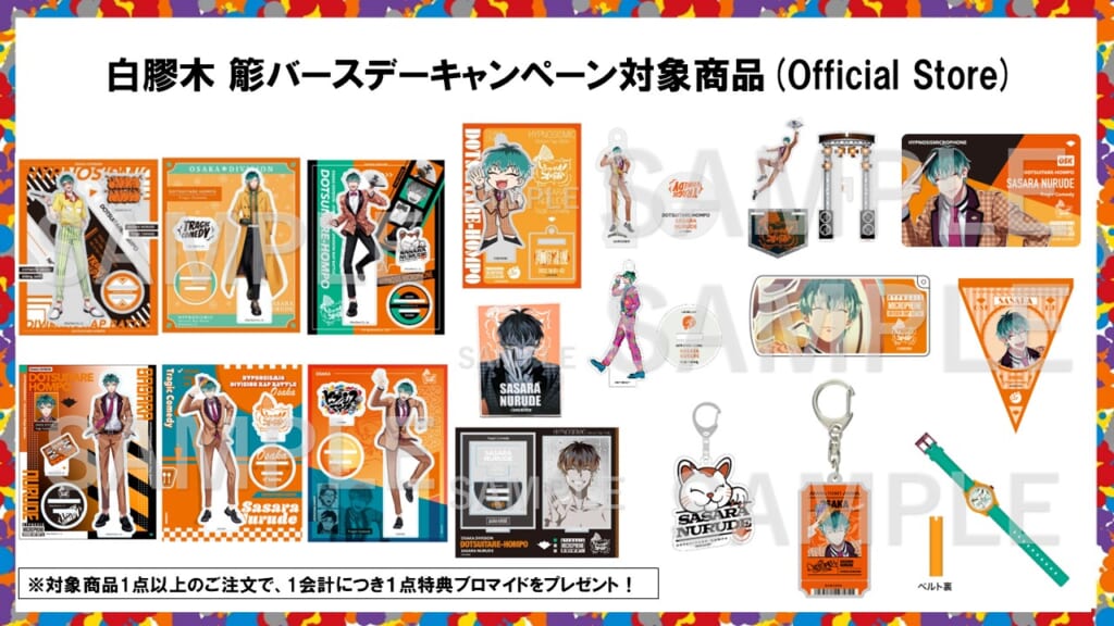 「ヒプノシスマイクオフィシャルグッズストア」、「HYPSTER Limited Store」ではバースデーキャンペーン開催中!10/31誕生日の白膠木 簓のグッズご購入のお客様に記念ブロマイドプレゼント!