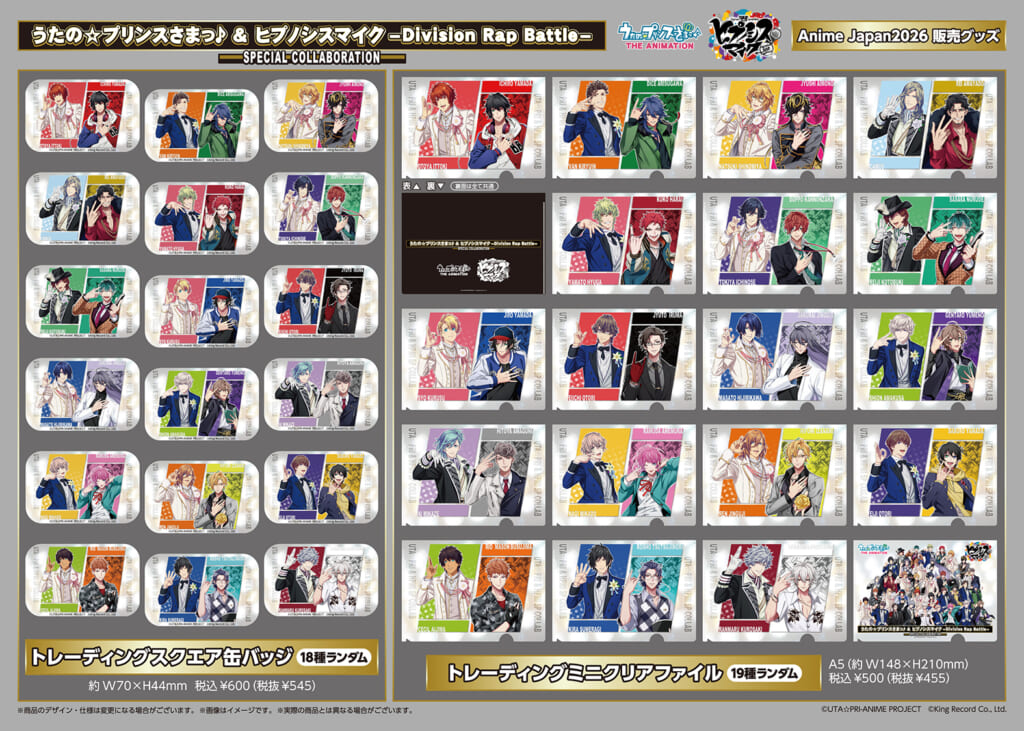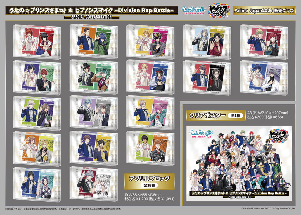 また、うたの☆プリンスさまっ♪&ヒプノシスマイク -Division Rap Battle-のスペシャルコラボレーショングッズの情報も解禁となりました。ラインナップはこちら!